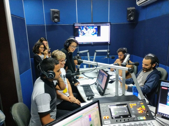 Equipe da Cordel nos estúdios da Rádio Universitária FM em Recife​